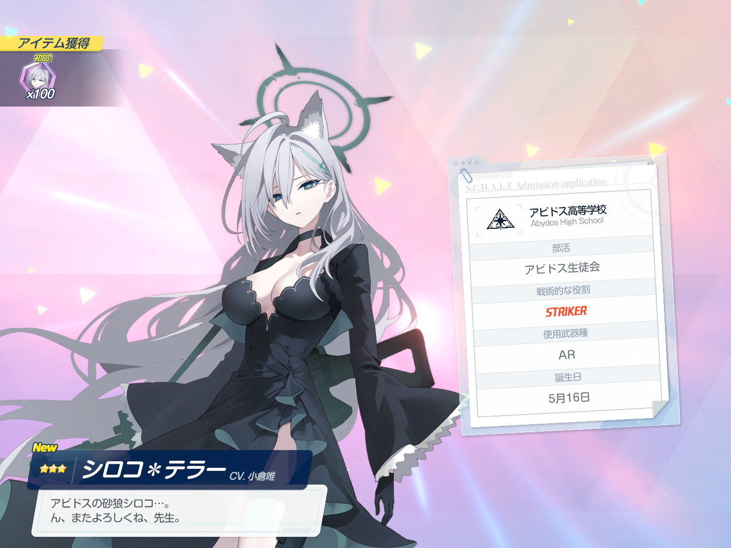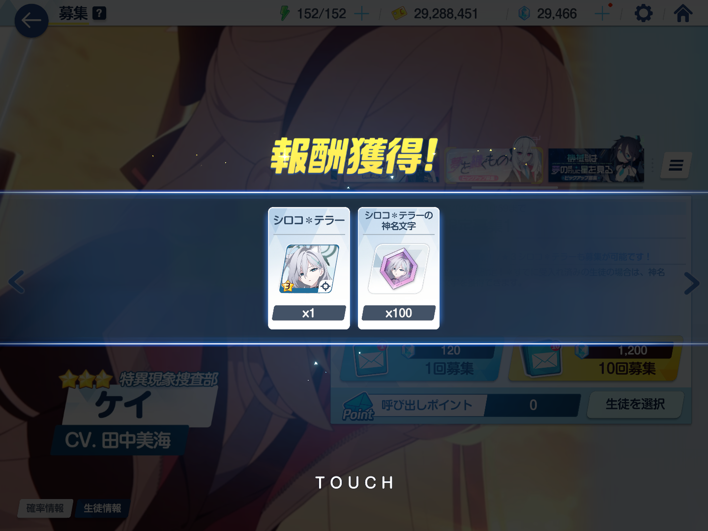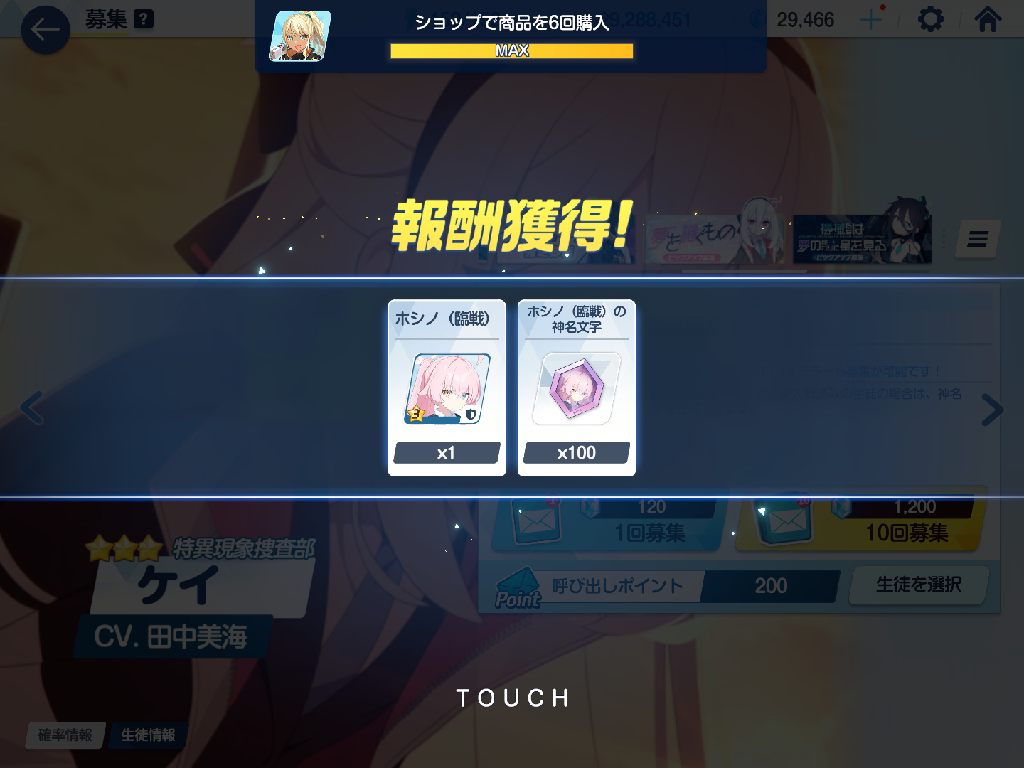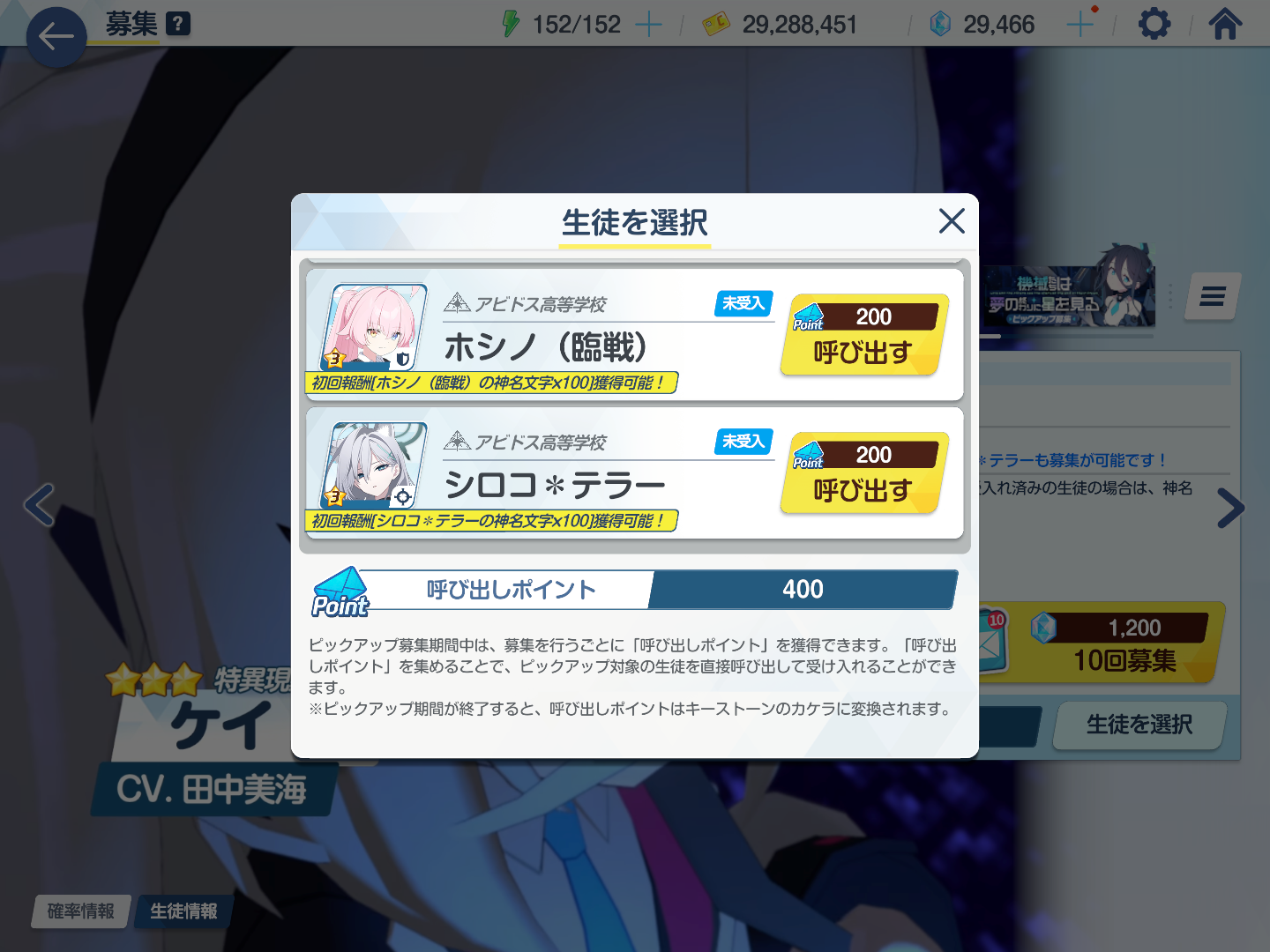 지향하는 최선의 목표는 2천장을 치면서 아리스(임전)까지 모두 획득하고, 모집 포인트를 통해서 호시노(임전)과 시로코*테러를 깔끔하게 교환하는 것.