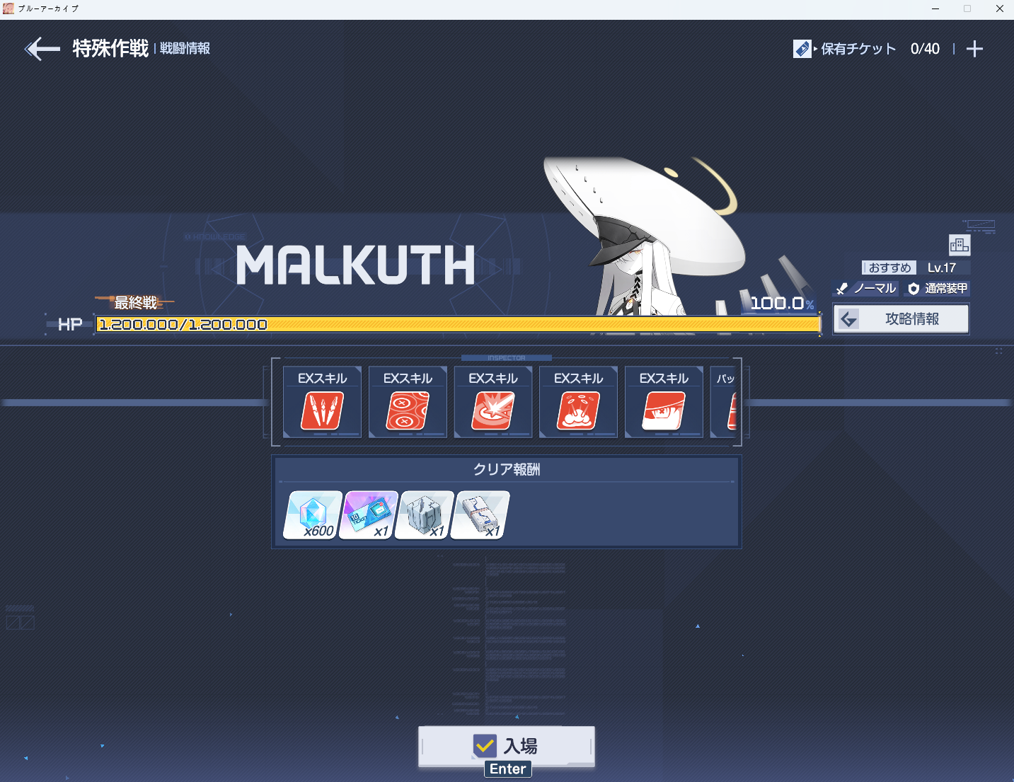 이때를 기점으로 매일매일 티켓 손실없이 말쿠트를 치면서 클리어 보상을 최대한 수급.