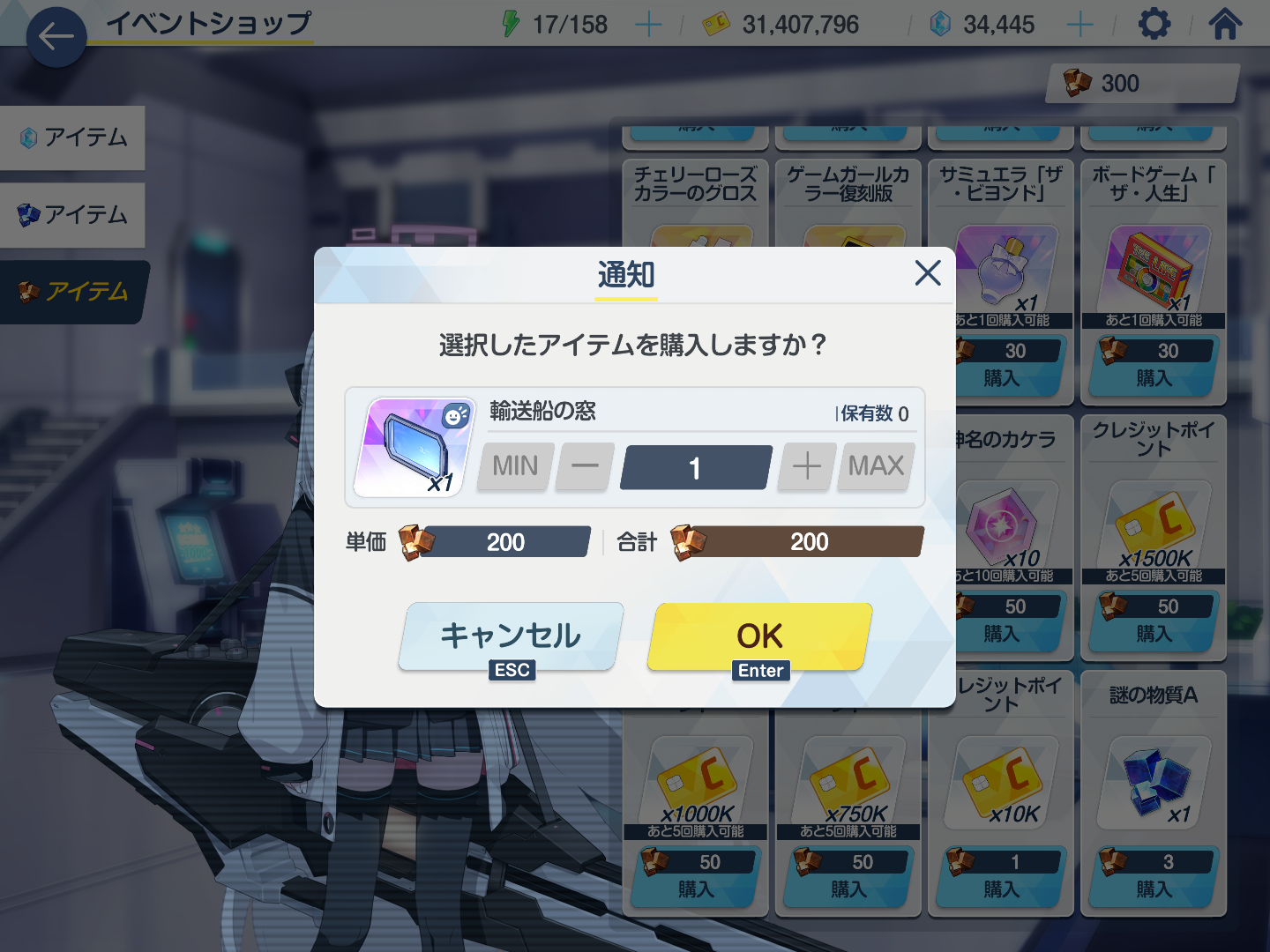 남은 모집 포인트는 계획대로 임시노와 시로코*테러로 교환.