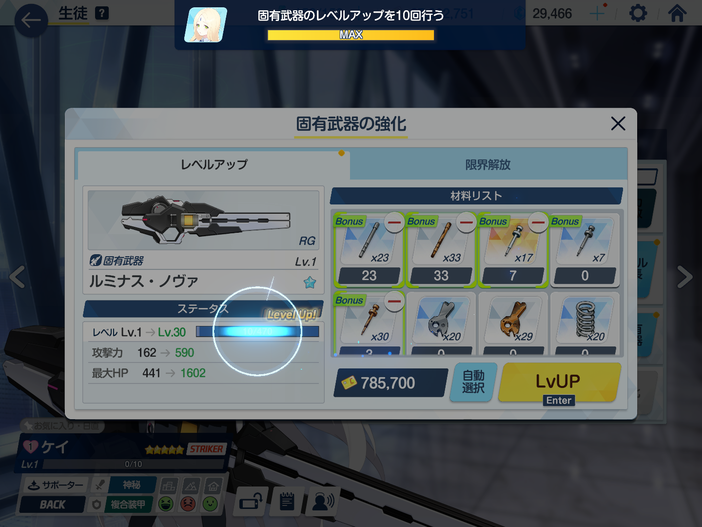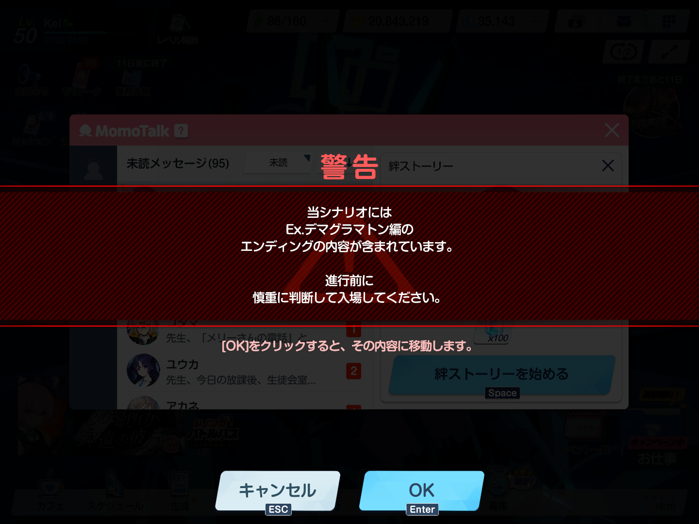 케이와 임리스의 인연 스토리도 전부 감상 및 메모리얼 해금.