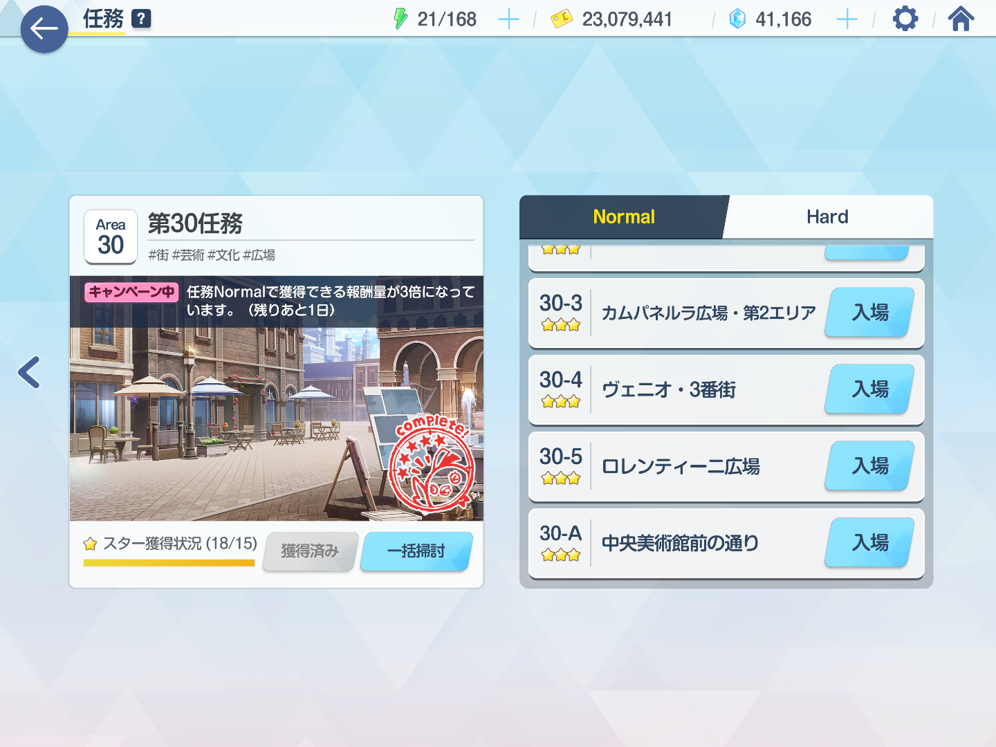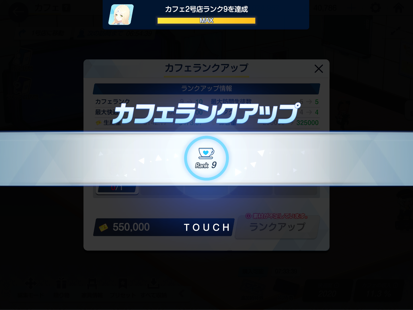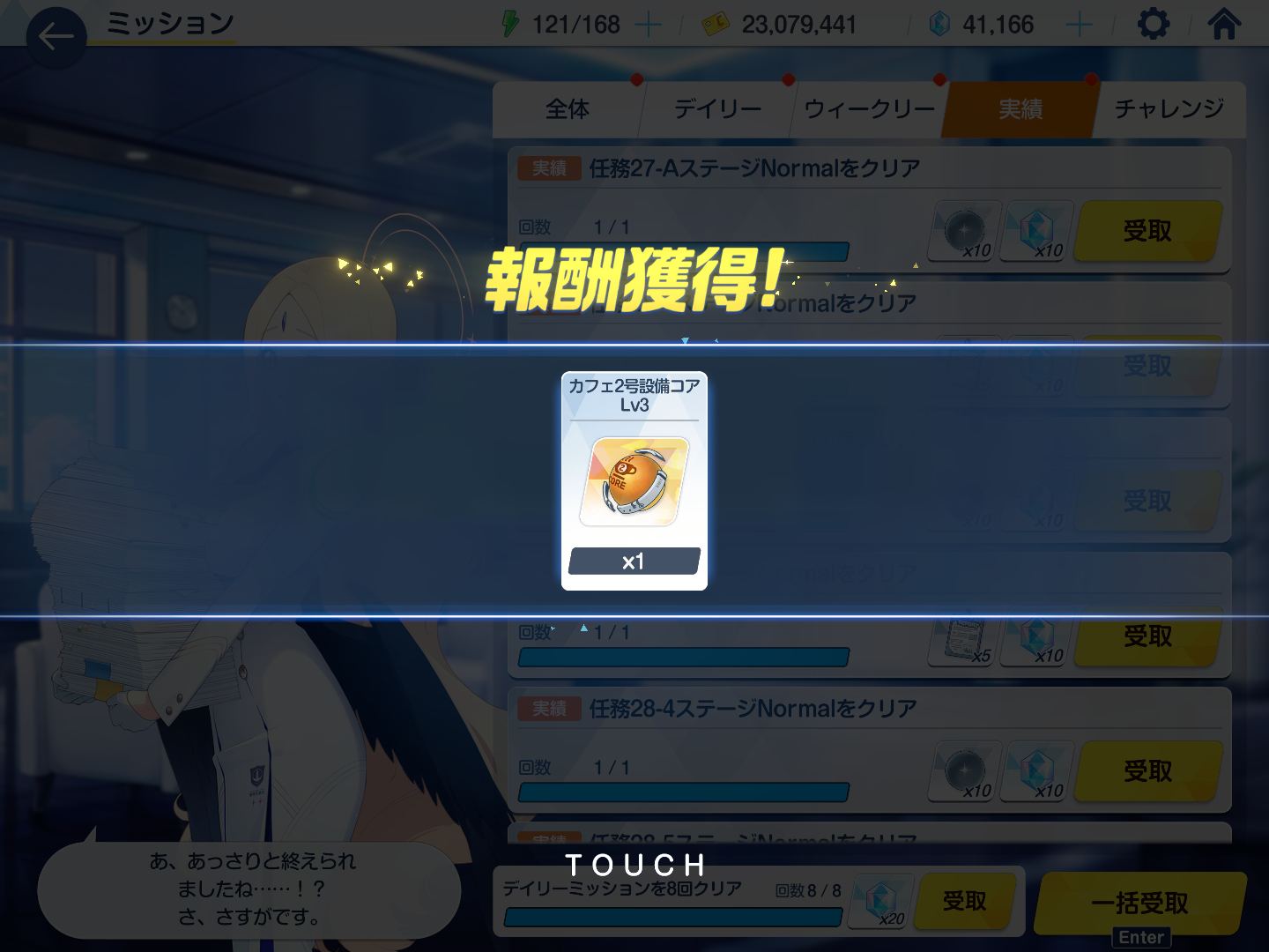 - 2월 3일(로그인 15일 차), 54레벨 기준으로 모든 임무(노말, 하드) 클리어 및 카페 랭크 업 졸업.