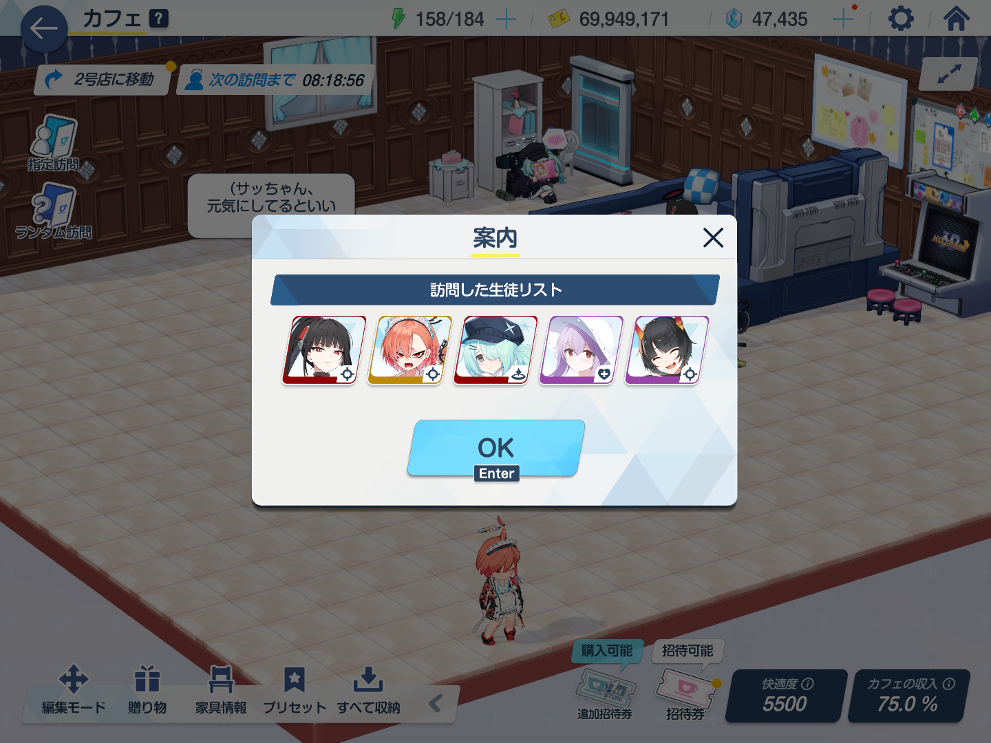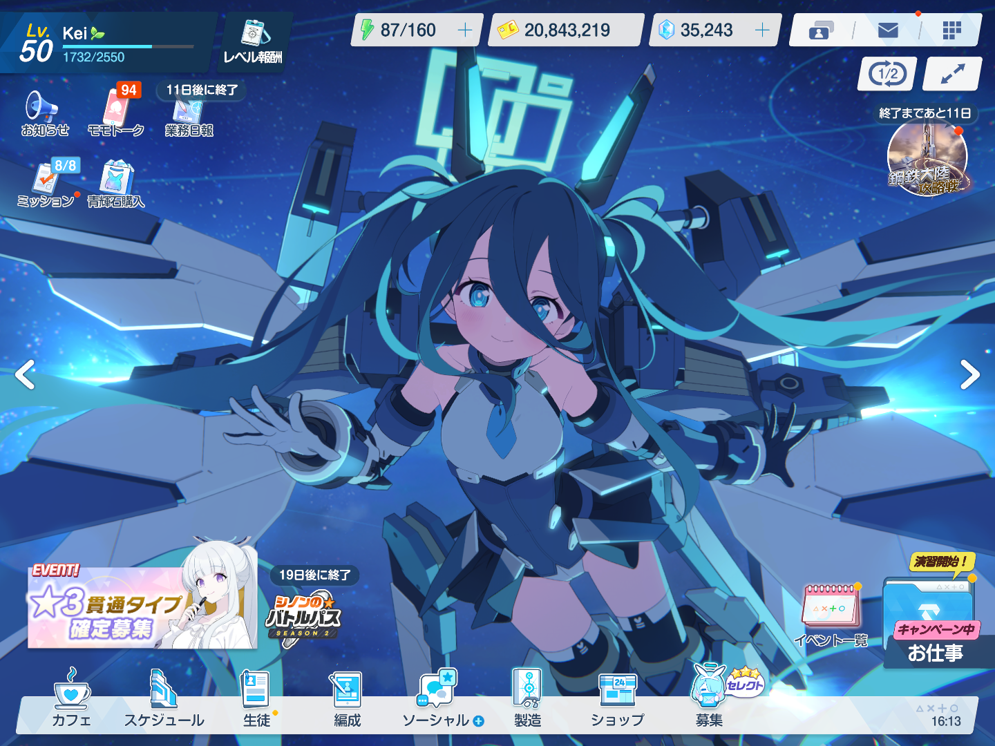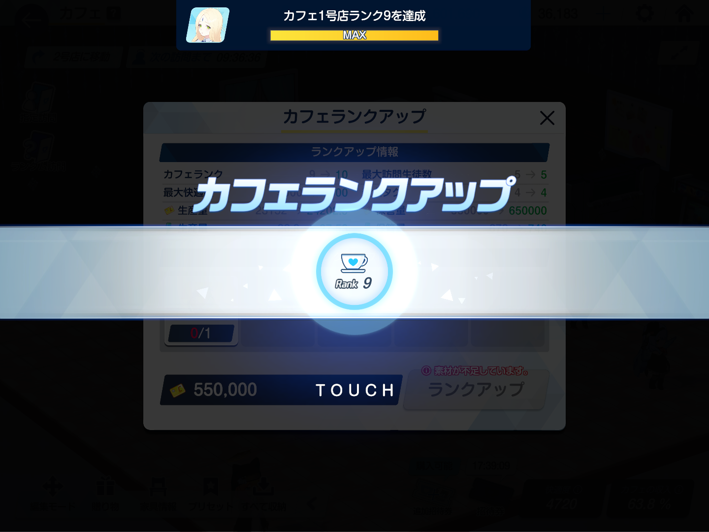 - 2월 3일(로그인 15일 차), 54레벨 기준으로 모든 임무(노말, 하드) 클리어 및 카페 랭크 업 졸업.