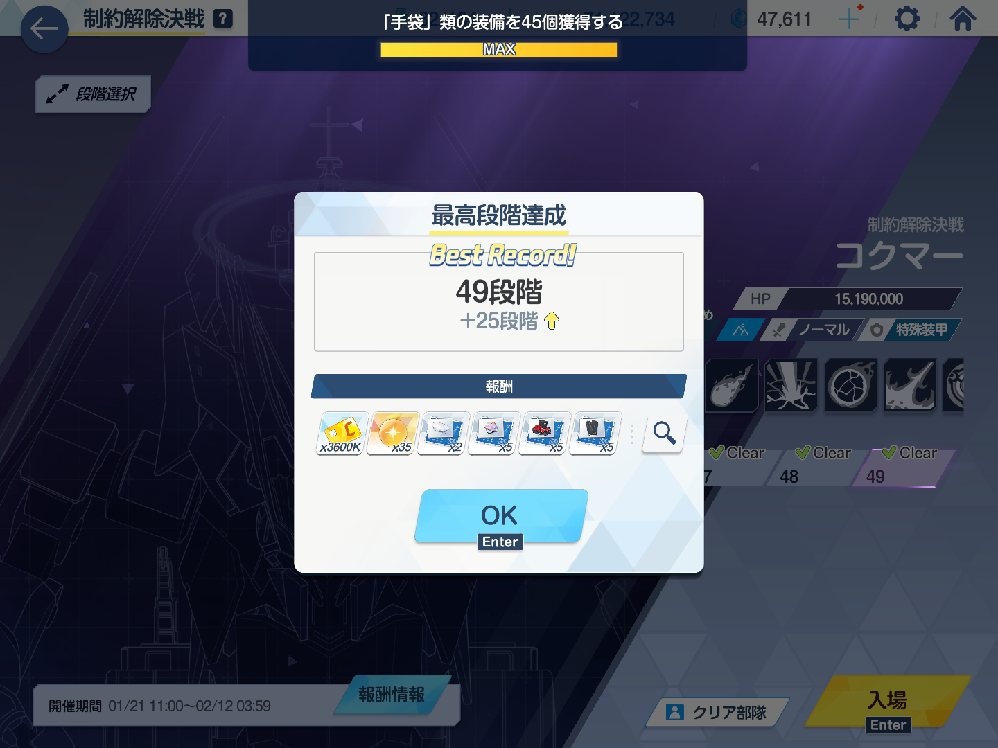 - 2월 7일, 특별 의뢰 - 크레딧 회수 올 클리어 및 60레벨 달성.