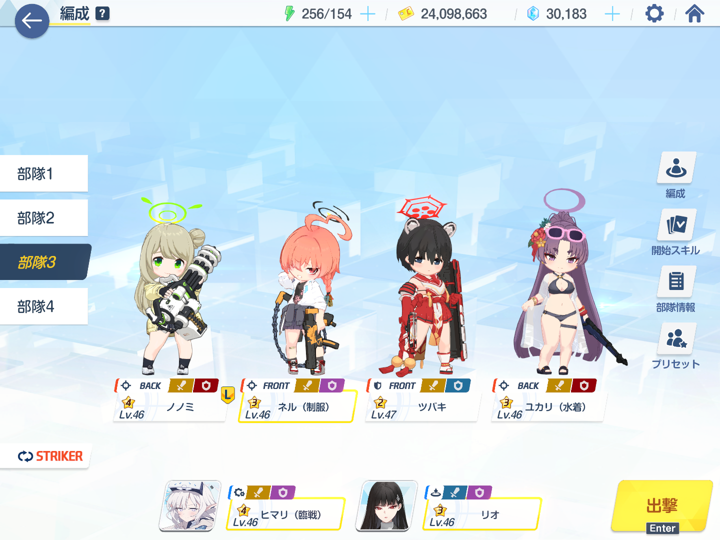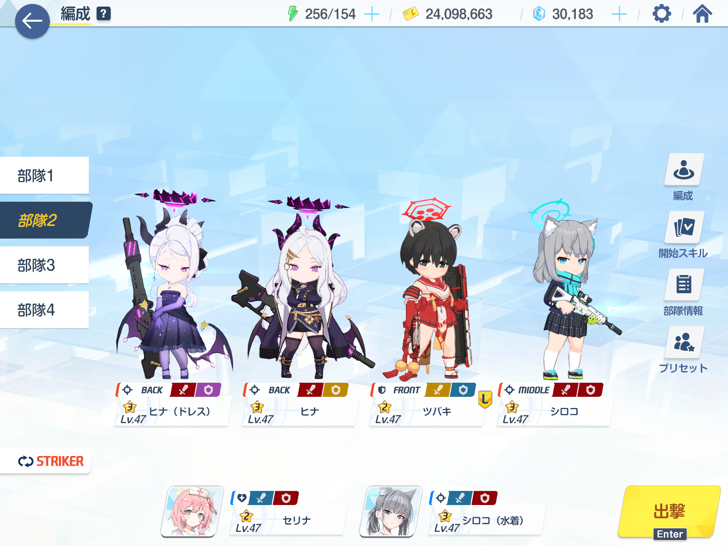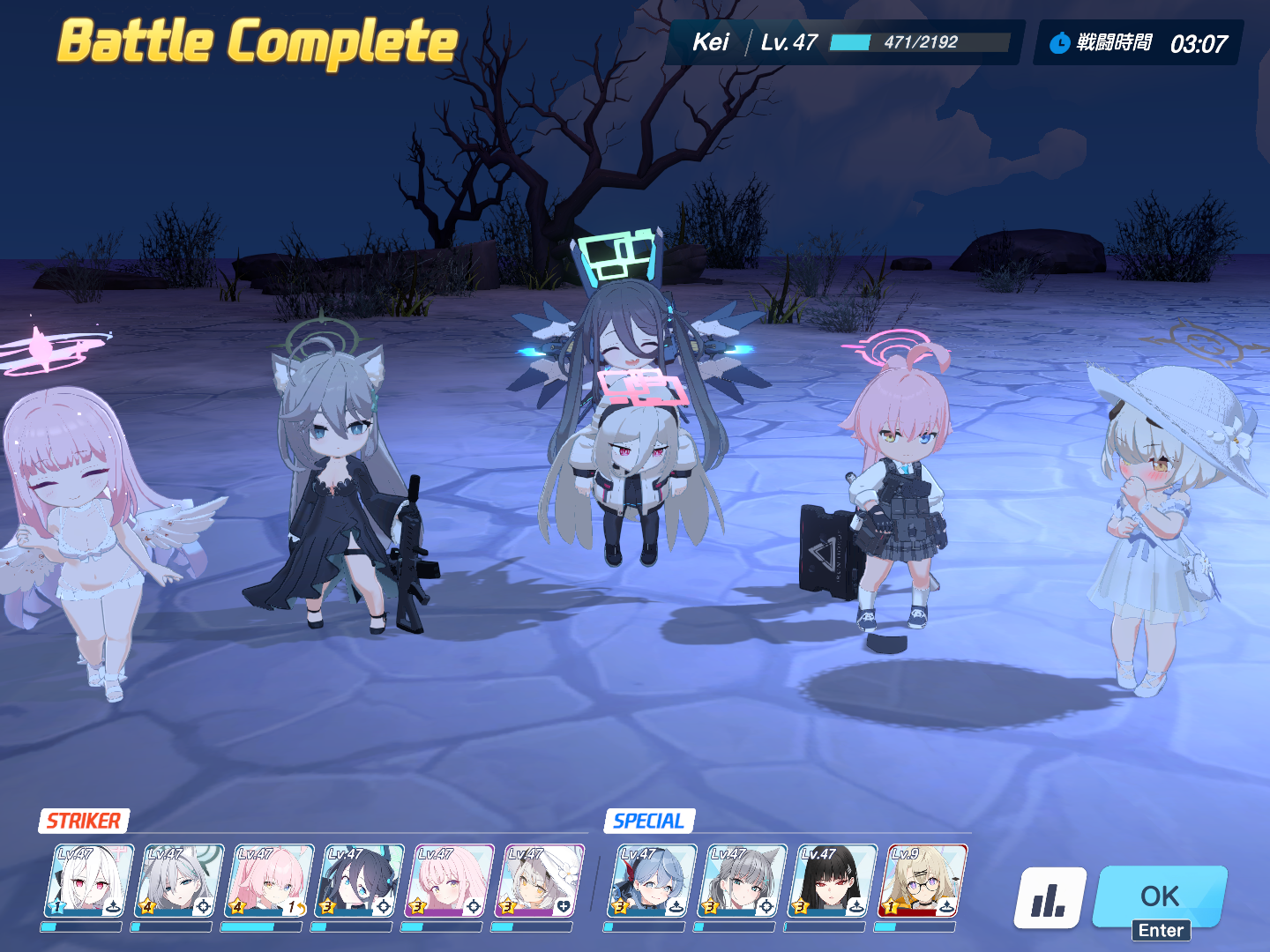 다만 한 번 사용한 조력자 학생은 다음 날까지 사용할 수 없으니 주의. 잘 모르겠으면 필자의 스샷처럼 메인 딜러(임리스, 수미카 등) + 코감 서포터 + 키사키 조합으로 코스트 찰 때마다 스킬만 돌려도 클리어는 무난할 듯.