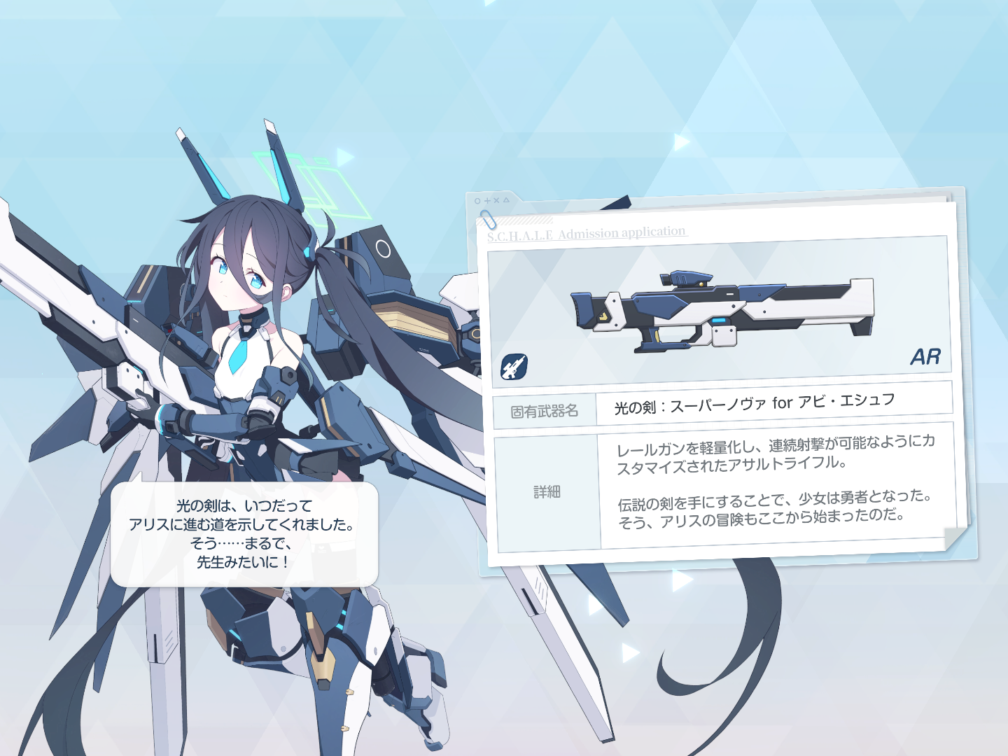 참고로 아리스의 고유 무기도 EX 데카그라마톤 편 및 임리스(무장 아리스)를 기점으로 '빛의 검 : 슈퍼노바 for 아비 에슈흐'로 새롭게 바뀌었는데,