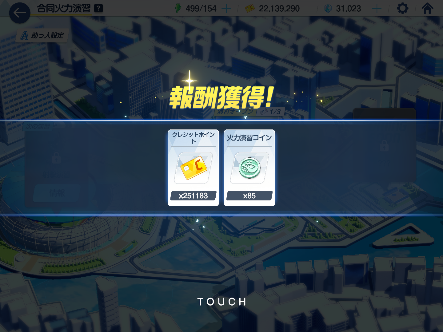 당일 시작된 첫 합동화력연습(종전시) 또한 바로바로 돌리며 크레딧과 코인을 수급.